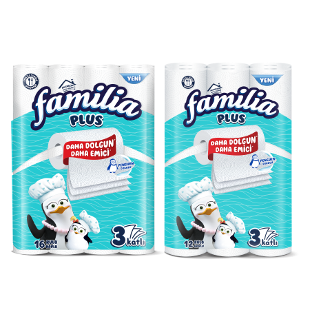 3 katlı Familia Plus, özel kanallı dokusu ile çok emici, çok dayanıklı! 1 saniyede emicilik vaad ediyor, işinizi hemen görüyor! Islakken kolay parçalanmayan özelliği ile hijyen sağlayan Familia en pratik yardımcınız olacak!